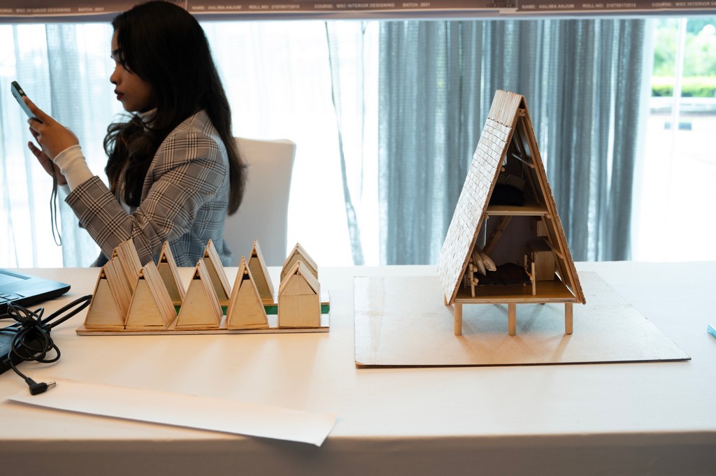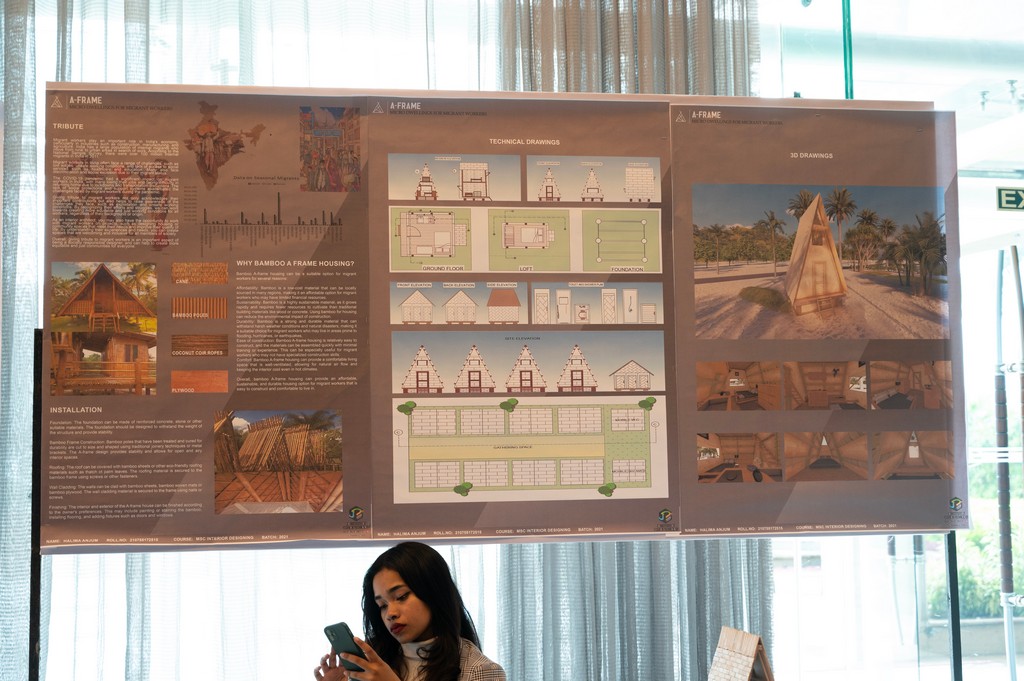 Home in Miniature is a design Showcased by Halima Anjum, Student of MSc. in Interior Design at Academy of design and Management under the guidance of JD Institute Of Fashion Technology Cochin, for JD Design Awards 2023.Micro homes made of bamboo A-frame buildings are a practical and sustainable alternative for housing migratory workers. These compact constructions make use of bamboo’s strength and versatility to produce durable frameworks that can sustain small living spaces. Bamboo’s quick growth makes it a plentiful and environmentally favorable resource that contributes to a low carbon footprint. The A-frame design maximizes space utilization while maintaining structural stability. Furthermore, the inherent insulating characteristics of bamboo aid in the maintenance of comfortable living circumstances. These micro houses are readily erected and disassembled, providing migrant workers with freedom and mobility in search of inexpensive and decent housing solutions.